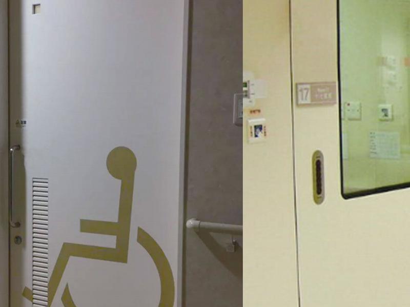 单扇门,宽度1300mm洞口,病床可顺利通过,无障碍设计为时间保驾护航,单扇带玻璃带防撞板病房门,门扇+门框无焊接环保结构,单扇门开启后可以通过护理车和移动床